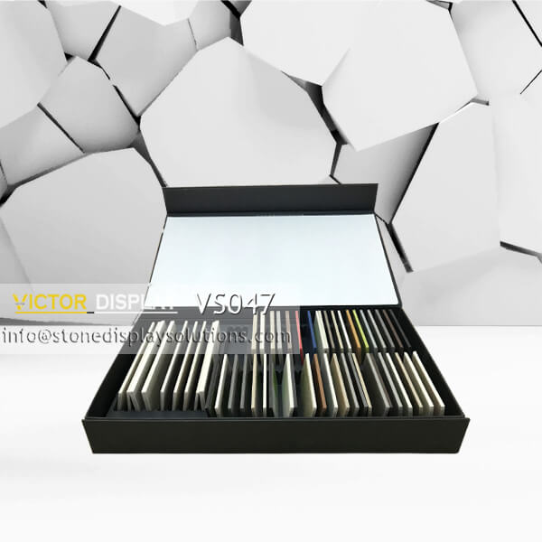 Victor Display produce and sale variety of stone boxes for quartz, marble, granite , wood flooring, solid surface and so on